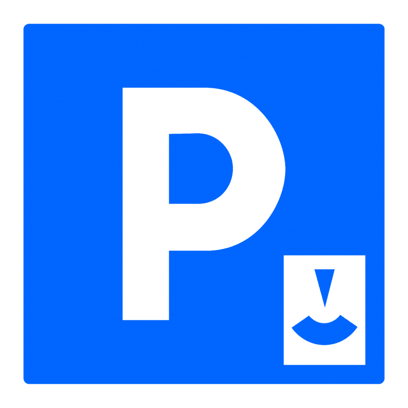 Elles sont matérialisées par des marquages bleus au sol ou avec la présence du panneau suivant :